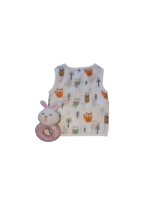Orange Fox And Owl Jabla Sleeveless Muslin