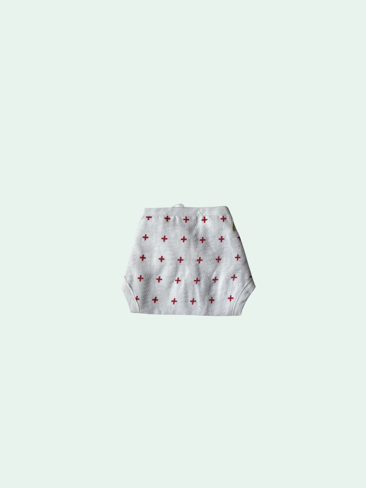 This set includes three playful prints — underwater whales, tiny red crosses, and abstract doodles — perfect for adding a touch of charm to your baby’s essentials.